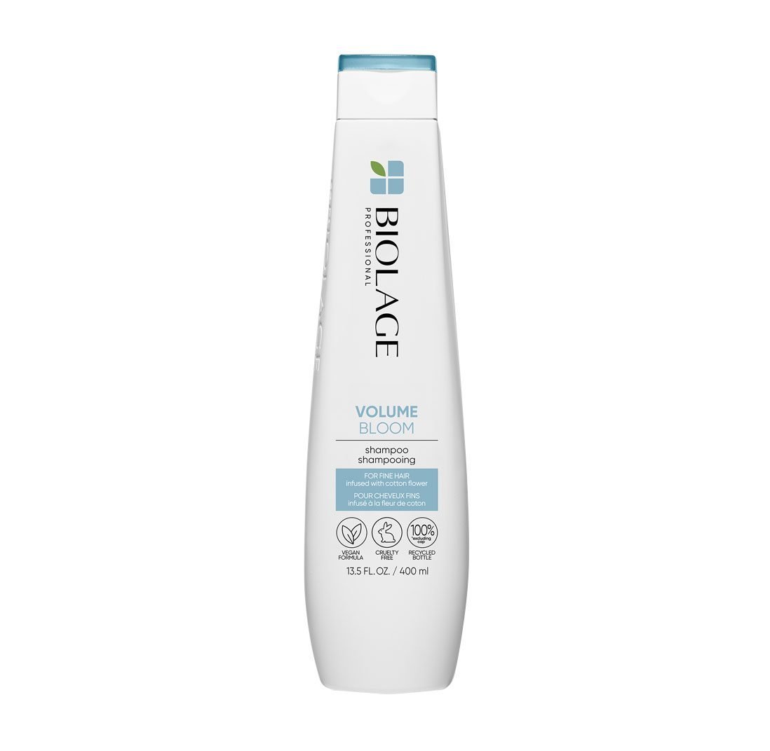 Biolage Volume Bloom Shampoo da volumen y cuerpo al cabello fino, dejándolo suave y lleno de vitalidad. Ideal para un cabello más grueso y con más movimiento.