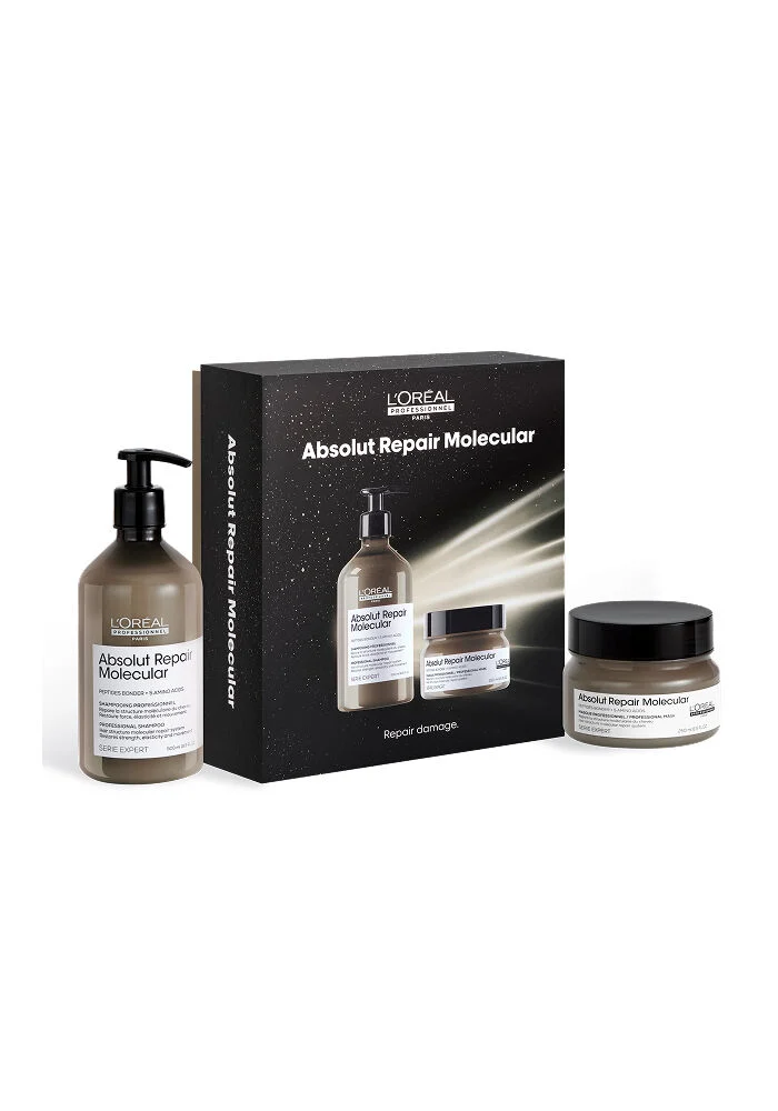 El Absolut Repair Molecular Set edición limitada incluye champú (500 ml) y mascarilla (250 ml) reparadora.