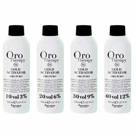 Agua Oxigenada Oro Therapy 4 oz, ideal para procesos de coloración y decoloración. Fórmula estable que garantiza resultados uniformes y profesionales.